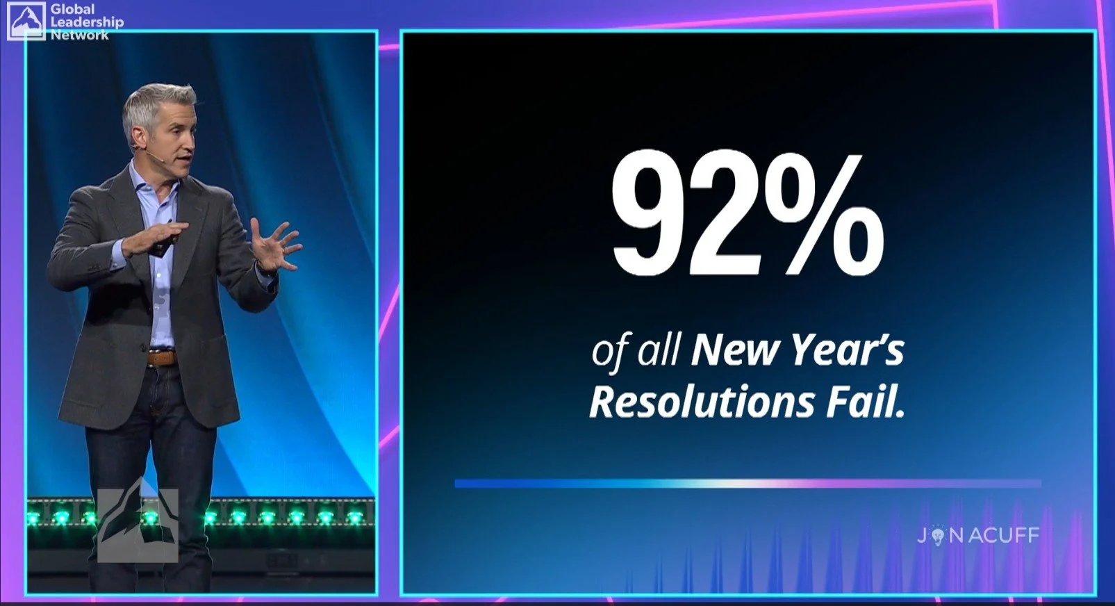 His opening session was titled: Why Resolutions Fail: Procrastination is a Mindset Issue.